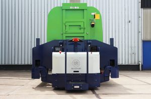 La particularité de cette machine est la fonction de double commande. Le transpalette électrique peut être contrôlé depuis une plateforme autoportée. De plus, la machine peut également être contrôlée à distance par radio.